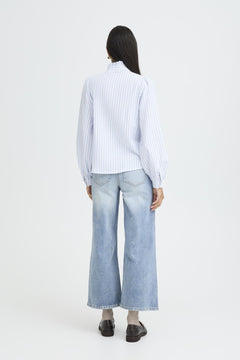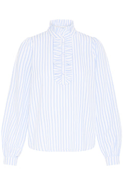 The b.young BYGINETTE Frill Blouse brings effortless elegance to your everyday wardrobe. Crafted in a classic blue and white stripe, this long-sleeve feminine shirt features delicate frills that add movement and charm to your silhouette. The regular fit ensures comfortable, flattering wear for any occasion. From office days to weekend outings. A versatile piece that celebrates understated sophistication and timeless style.