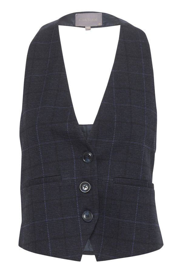 Look sharp and sophisticated with this Beatriz Halterneck Waistcoat. Styled with a smart waistcoat, small check, and halterneck, this piece will give you a timelessly elegant look. Crafted from quality fabric, you'll stay stylish and comfortable all day long.