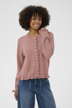 This Culture CUjulietta Frill Cardigan features a beautifully designed fill detail, adding a touch of femininity and style to any outfit. With a long sleeve and round neck, this beige cardigan offers a regular fit for a comfortable and flattering look. Complete with a button front, this cardigan is the perfect addition to your wardrobe.