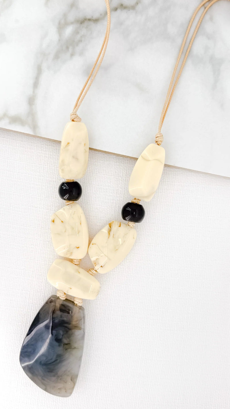 Layered with understated elegance, this adjustable cord necklace features cream and grey resin pendants that strike the perfect balance between modern and timeless. The soft taupe cord adjusts to your preferred length, making it versatile enough for everyday wear or dressed-up occasions. Lightweight resin construction keeps comfort top of mind, while the neutral palette pairs effortlessly with any wardrobe. A piece that feels both contemporary and endlessly wearable.