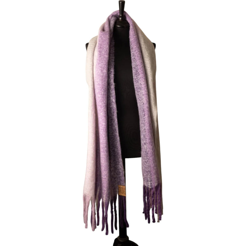 This oversized, chunky blanket scarf features a beautiful vertical gradient stripe and delicate tassel fringe in soft, dusty pink and lilac hues. Perfect for elevating both casual and formal looks, it complements coats, sweaters, and jackets effortlessly. An ideal gift for birthdays, holidays, or special moments, this scarf combines warmth with style. Embrace cozy winter layering and add a touch of elegance to your wardrobe—stay chic and snug all season long.