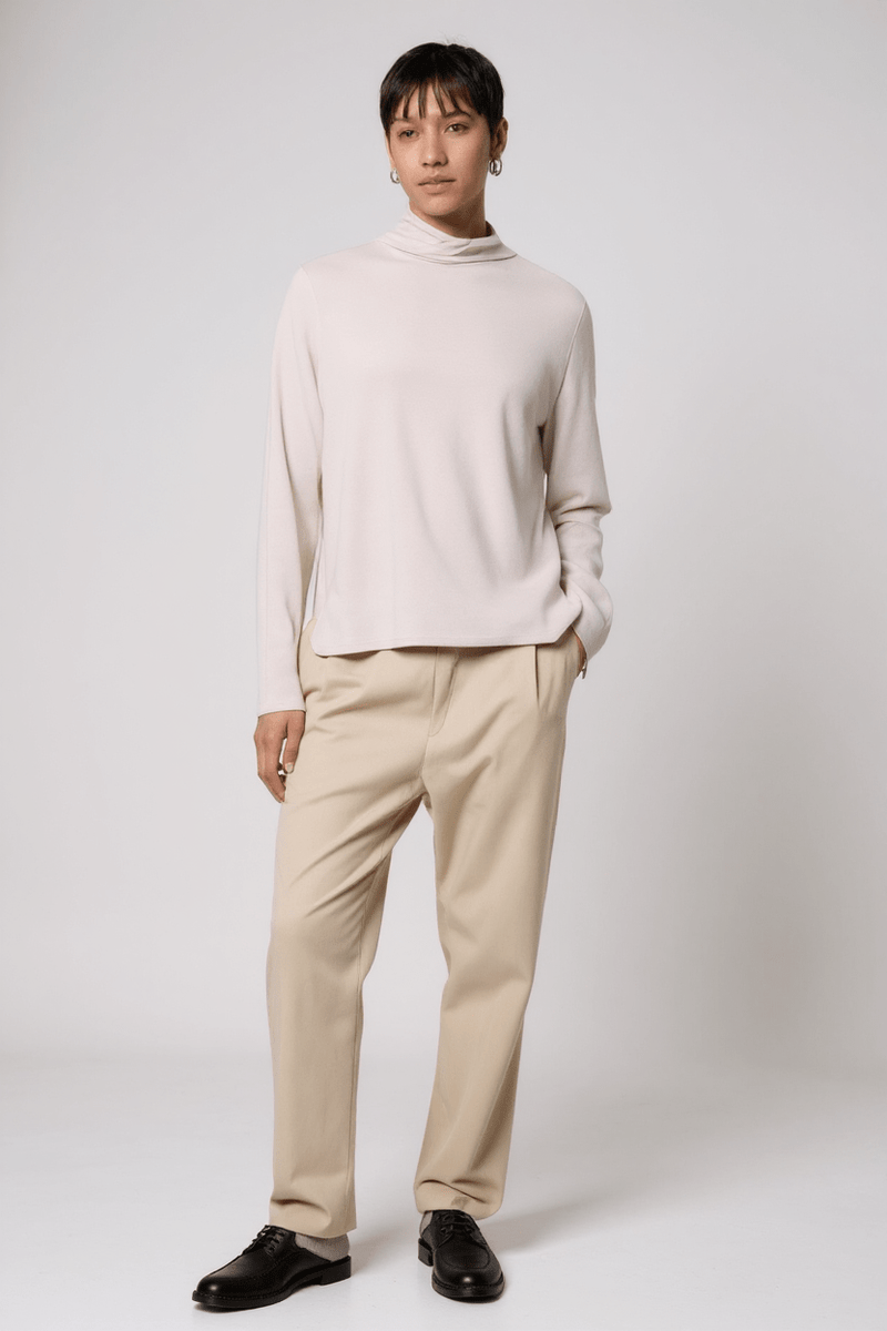 Elevate your winter wardrobe with this Modal High Neck Sweater, crafted from super soft, fine-knit fabric for exceptional comfort. Its long sleeves and regular fit make it an ideal layering piece, while the neutral stone colour adds effortless elegance. Designed to keep you warm and stylish, this sweater is your perfect companion for crisp, chilly days.