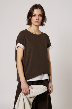 Embrace effortless style with the Modula Boxy Shirt in Military Green by Neirami. Featuring a fine knit, round neck, and cap sleeves, this loose-fit top offers comfort and versatility. Its relaxed silhouette makes it perfect for layering or wearing alone, inspiring confidence in every look.