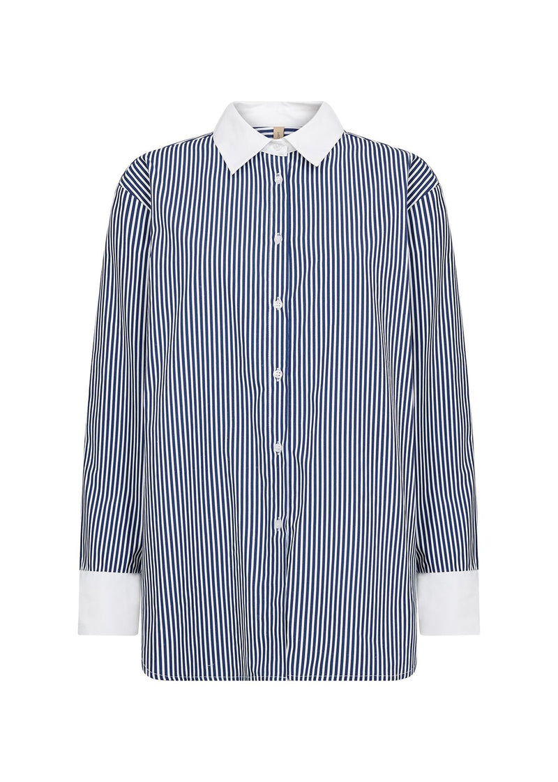 Elevate your everyday wardrobe with the Soya Concept Belinda 2 Shirt, a thoughtfully designed piece that blends sustainability with timeless style. Woven from a conscious blend of 53% recycled polyester and 47% organic cotton, this shirt embodies responsible fashion without compromising on quality. The refined silhouette showcases a crisp collar, front button closure, and striking vertical stripes, finished with contrasting cuffs that add a touch of sophistication. Pair it with tailored trousers or leggings to create an effortlessly polished ensemble that reflects your values.