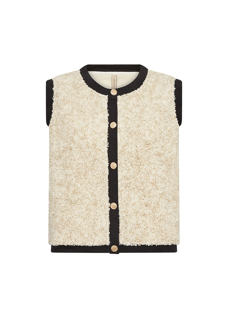 Elevate your everyday wardrobe with the Soya Concept Bessie 6, a versatile waistcoat made from sustainable 100% recycled polyester. This piece showcases a refined round neckline, classic front button closure, and distinctive textured boucle fabric that adds visual interest to any ensemble. Whether you're seeking effortless casual style with denim or polished sophistication with tailored trousers, this thoughtfully designed layer inspires you to express your unique fashion sense while making a positive environmental choice.
