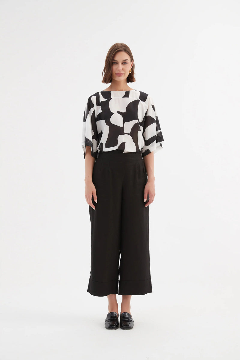 Embrace effortless style and comfort with the Tirelli Wide Leg Linen Trouser in Black. Crafted from breathable linen, these trousers flow beautifully while keeping you cool through every season. Their wide-leg design offers a graceful silhouette that moves with ease, making them a versatile essential for your wardrobe. Whether dressing up or down, these trousers bring elegance and breathability together for timeless wear.